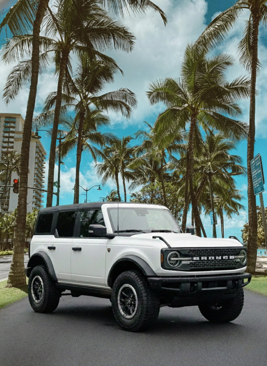 Our Broncos are built for adventure, whether you're chasing sunrise at a hidden beach, cruising the North Shore, or exploring off the beaten path. Every rental includes the essentials so you can hit the road worry-free.